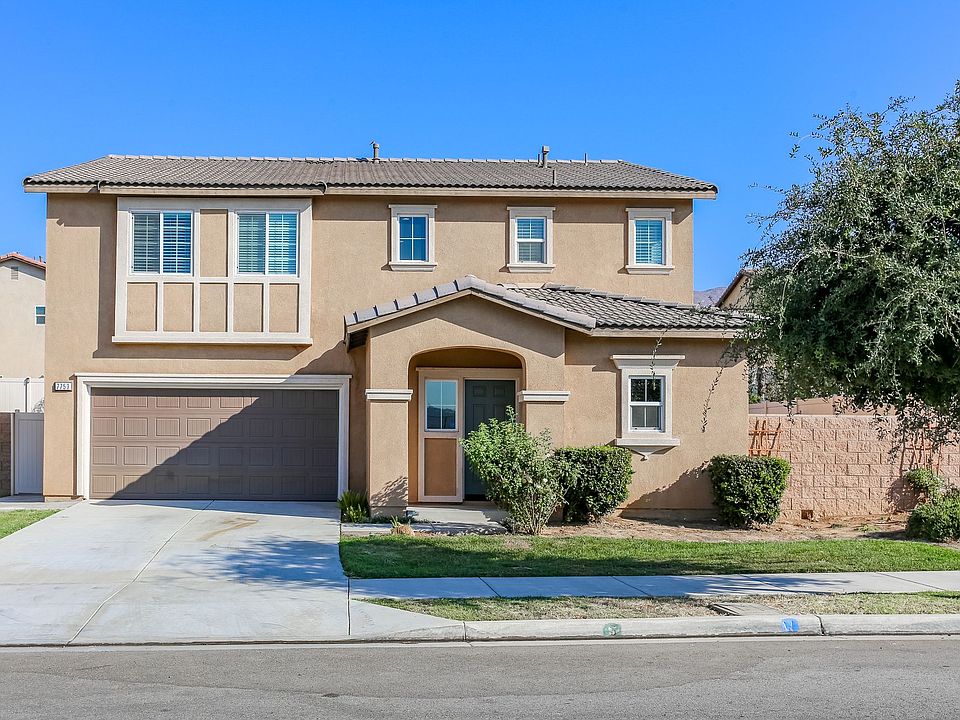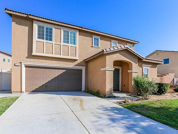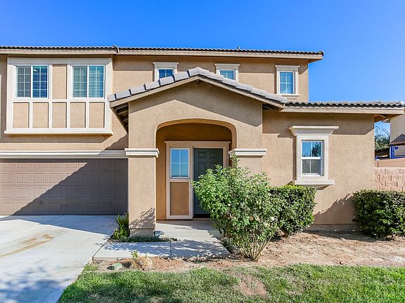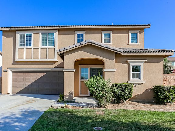 Beautiful 5 bedroom, 2.5 bathroom, 2 story home with a main floor bedroom in the highly desired community of Sierra Pointe in Jurupa Valley! Enjoy the open floor plan with carpet and tile flooring, ceiling fans, and lots of natural light. The kitchen offers dark wood cabinetry, a large center island, recessed lighting, breakfast counter, and is open to the family room. The primary bedroom features a walk-in closet, dual sink vanity in the primary bathroom, and a large walk-in shower. Additional property highlights include the laundry room, beautiful valley views, a 2 car garage, and no HOA. The sloped backyard has a gated dog run and a covered patio with a ceiling fan. Community features include nearby parks, walking paths, and easy access to major freeways!
