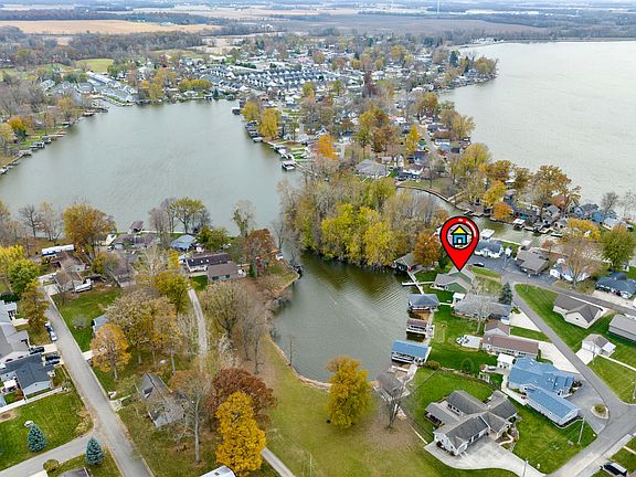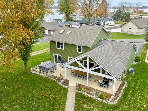 Beautiful waterfront home at Indian Lake! Nestled on Dollar Pond, this property features 82' of waterfront, huge yard, & gorgeous new Craftsman-style covered patio that's perfect for waterside entertaining. Many updates throughout including new siding, roof, windows, doors, lighting, paint, LVP flooring, carpet & more! The new kitchen features gorgeous black cabinetry, suede granite counters, & SS appliances. The modern master bath has an oversized walk-in tiled shower & double sink vanity. Upstairs you'll find 2 beds, 1 bath & an open loft that's great for a playroom/extra sleeping space. Outside you'll love the storage space in the detached 2nd garage & also in the boathouse. Boathouse has AC & can be used for extra sleeping space! Dock features electric lifts & fresh paint.