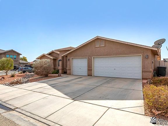 Welcome home to this 5 bedroom, 3 bath, 29.5' X 22.5' 3 car garage home situated on a generous corner lot with front low maintenance desert landscape in front, grass and colorful shrubs in raised block planter in backyard all on timed water system. 10' X 34' extended back covered patio, double gates, pedestrian gate and colored concrete sidewalk from side gate to back of home. 2 sheds will convey. Portico entry with security screen to foyer to open great room with vaulted textured ceilings, ceiling fans, and French Door to backyard. Kitchen features a huge breakfast bar, custom tile floor, walk-in pantry and built-in side bar. 2 bedrooms, bathroom with raised toilet, tile floor, kohler faucet, and glass shower doors on one side of great room, 2 bedrooms with pocket doors in between to join if desired and hall bath with raised toilet, tile floor, kohler faucet, grab bars, and glass shower doors on other side of great room. Spacious primary bedroom with cedar in walk in closet and large bathroom with double sinks, newer faucets, updated medicine cabinets, water closet, and beautiful glass shower doors. Ceiling fans with wall remotes. Many upgrades performed by the owner. Water softener, whole house multi media filtration system, newer water heater.