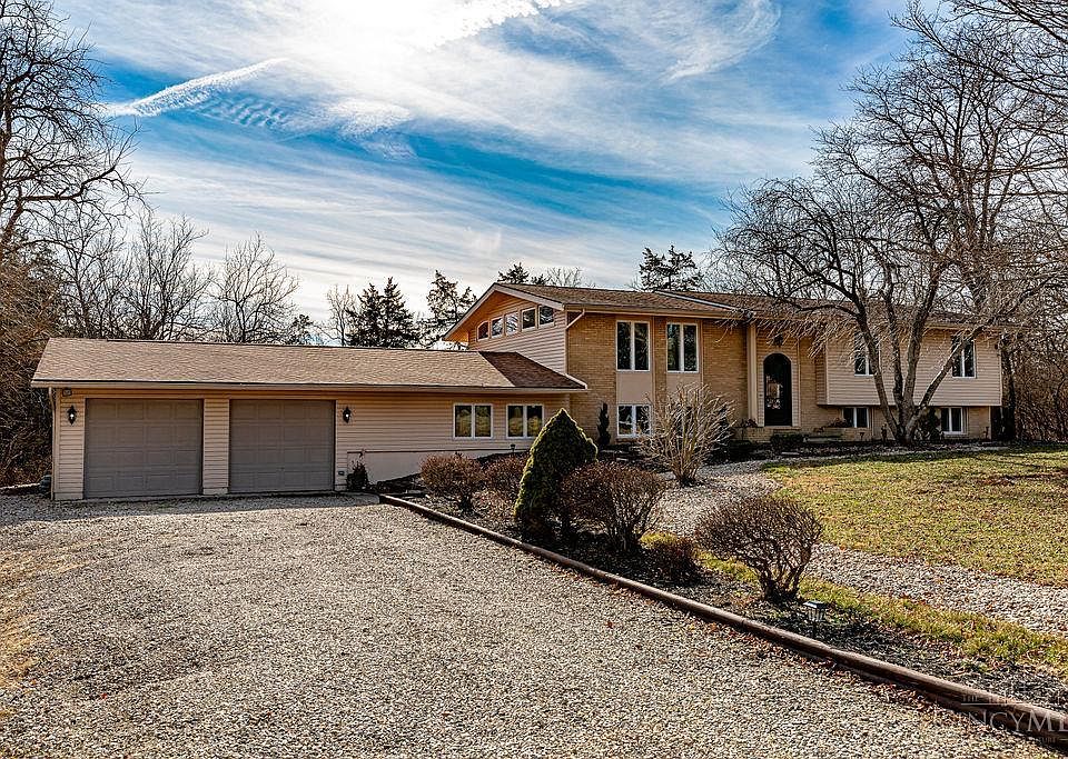 Updated 4-5 BR home offers an impressive blend of comfort, space, and natural beauty, nestled on 5.73 private acres surrounded by mature trees and serene views. The main floor features an inviting flow with a spacious family room, formal dining room, and an updated eat‑in kitchen. Both the kitchen and the primary bedroom open onto a full‑length deck, perfect for morning coffee or evening relaxation while overlooking the peaceful backyard. The lower level is a standout with four walk‑outs, a second expansive great room, a dedicated workout room, and a cozy family room complete with a wood‑burning fireplace and wet bar- ideal setup for an in‑law suite. A full bathroom, laundry room with utility tub, and storage complete this versatile level. Many will appreciate the oversized finished garage with workshop area and 220 electric, rustic cabin with electricity, a fire pit, storage shed, a flowing creek, and the kind of privacy that's increasingly hard to find.
