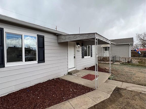 Back on the market because buyer's loan wasn't approved. Updated 2 bedroom, 1 Bathroom Ranch home with oversized detached 2 car garage. Open floorplan with kitchen flowing to the living area. Home boasts newer vinyl flooring, kitchen cabinets, granite counter tops, appliances, LED lighting, paint(interior and exterior), roof, carpet, and updated full bathroom. Hook-ups for a stackable washer and dryer. Lots of parking in the front driveway, as well as the back driveway at the entrance to the 2 car detached garage. Large storage area next to the garage. Large front and back yard that is fenced. Front porch has a covered awning. Easy access to in all directions with close proximity to I-76, 270, I-25 and I-70.