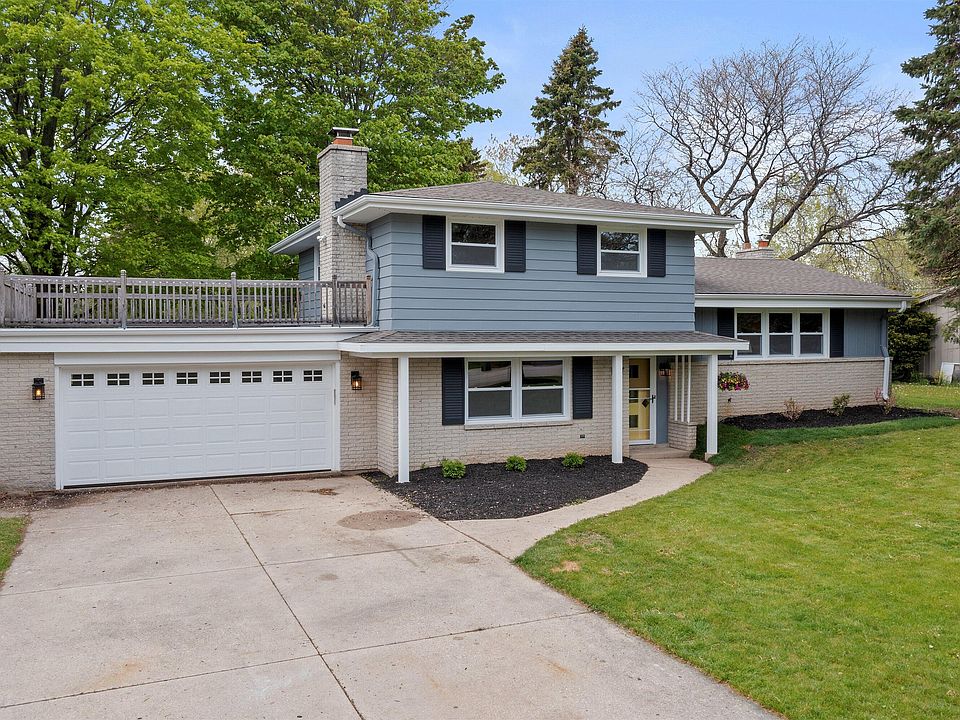 Totally renovated, Mid-Century Modern, sprawling, split level on amazing large lot. Fabulous feel with an open concept vibe, sizzling white kitchen with prep island that seats 3 to 4, solid surfaced counters, subway tile backsplash and gleaming hardwood floors. all open to dining and living room with great sunlight. Lower level Family Room has natural wood burning fireplace with stone hearth, heated floors, and is adjacent to home office. Dreamy first floor master suite with renovated bath, walk-in closet and access to backyard deck. 3 additional spacious bedrooms up and 2nd fully renovated bath. Very convenient attached garage. Full basement with sump pump in the lower. Expansive wooded yard and amazing deck. DOT to install permanent limited easement noise wall.
