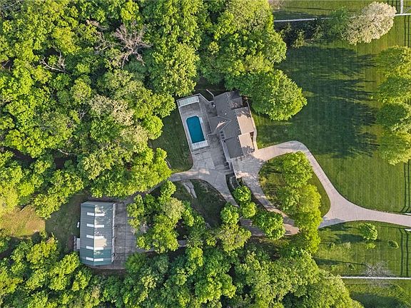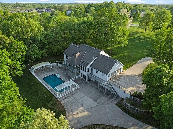 Just what you have been looking for ....located in PARK HILL HIGH SCHOOL area !!! 5 acres w/ Ranch/Reverse floor plan home, an inground swimming pool w/ new liner AND phenomenal 40'x80' outbuilding with an upstairs apartment & 1/2 bath on main floor. Perfect for RV storage, business location. Beautiful white vinyl fence around the front and portion of the sides of the acreage w/ GATES at the front entry. The entire driveway is paved and has a circle to maneuver equipment, trucks, or RV's. NEW Hardy Board siding on the home. NEW interior Nell Hill's designer paint, NEW carpet in LL. Main level has a formal dining / office space. Finished walk out lower level to inground swimming pool and patio. NEW vinyl liner in pool. Wonderful entertaining space for movies or games! Large 3rd bedroom w/ bath. 2 car garage on main and 2 + in excavated area under the garage w/ it's own garage door. There is an atrium retractable cover for the pool which allows for year round swimming! The acreage is heavily treed with a creek in the very back of the property. Country surroundings but close to shopping, restaurants, I-435, KCI and I-29!!! Enjoy your own resort/oasis!!!