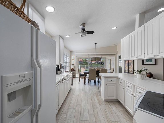 This regent model in desirable Riverwalk of the Palm Beaches is the home you've been looking for. when you walk into the home you are greeted by the great room with vaulted ceilings which opens up to the open kitchen and dining area perfect for entertaining .The main bedroom is separated from the guest bedrooms offering privacy and a beautiful lake view. Complete with ceramic tile floors throughout, upgraded closets garage storage , new accordion shutters, and new roof in 2022. Imagine starting or ending your day to the tranquil view of the lake from your covered patio and fenced yard watching the abundant wildlife that make the lake their home .This lovingly maintained home is located at the back of the community far from traffic noise , truly an oasis.Make this home yours today .