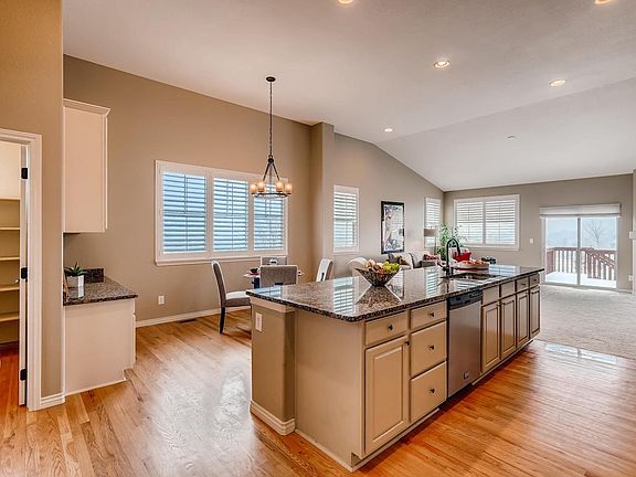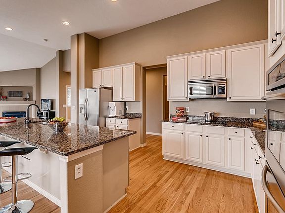 Attractive home on a beautiful cul-de-sac lot in the sought after Spring Mesa neighborhood. Enjoy majestic mountain views and the Denver Skyline from this recently renovated Spring Mesa ranch on a perfectly manicured .38 acre lot. Beautiful Chef's Kitchen with white cabinets, granite counters, stainless appliances & over-sized island. Features include deluxe master suite, main floor office, wood floors, plantation shutters and 4 car garage. Walkout basement has huge rec room & palatial guest suite. Premier neighborhood w/open space trails & award winning schools. Newer floors on main level. Close to parks, trails & lakes.
