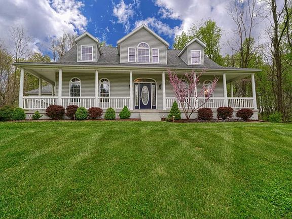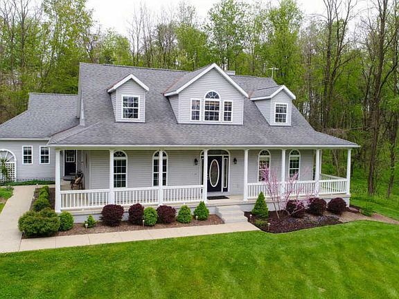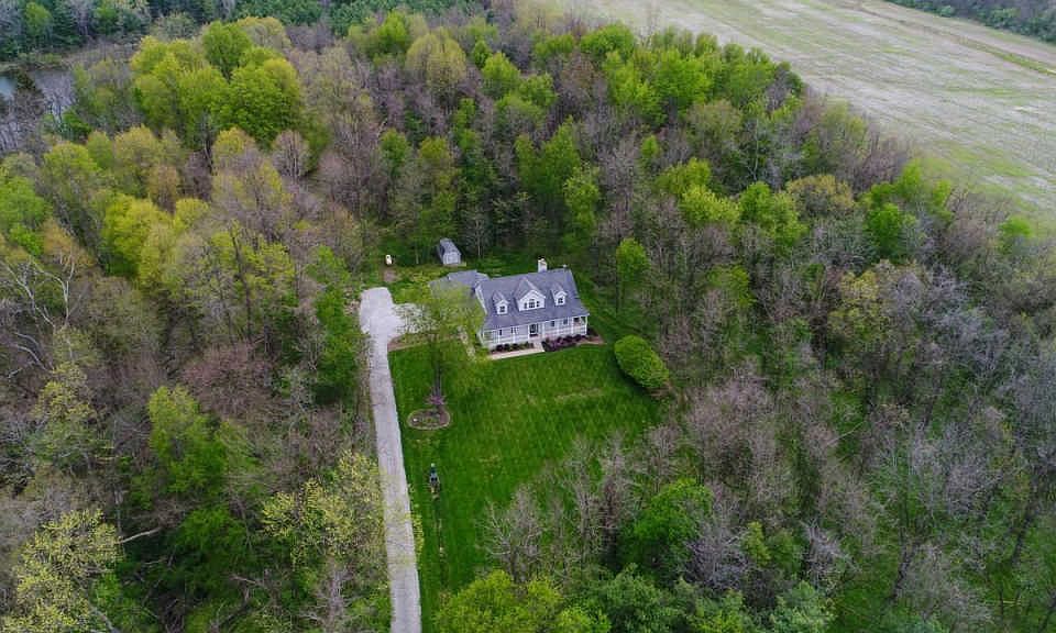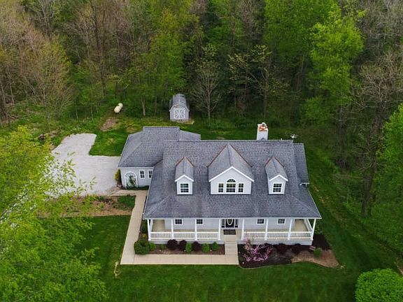 Back a mature tree lined lane rests this custom built 1st floor master classic cape cod nestled on a very private wooded lot. Soaring 2-story great room, lots of hardwood floors, recent kitchen remodel including granite counter tops. Brand new master bath updates including garden tub, granite counters, and LVT flooring. Incredibly functional wood burning stove insert and fireplace surround remodel. Flexible 2nd floor with 3-bedrooms/in home office. Full wrap around porch, side load 2-car garage, 1st floor mud room, Full 13-course basement, covered back patio and storage shed. Incredibly well cared for with many owner updates. Hardwood trim and doors, maple cabinets, built in appliances including 30'' double ovens, and his and hers closets in the owner suite. Kinetico reverse osmosi