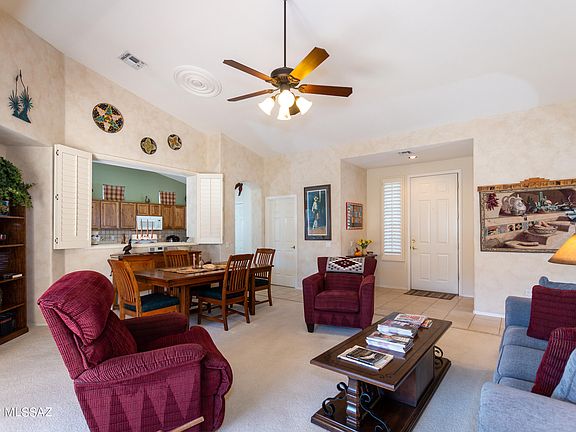 This San Gabriel model home, encompassing 1,760 sf of living space, is situated on a cul-de-sac lot adjacent to common area with mountain views. A private, gated patio greets you as you enter. Soaring ceilings enhance the living space. The kitchen opens to the living and family room areas and is perfect for entertaining. The primary bedroom is tucked away at the rear of the home with an en-suite which includes a step-in shower and walk-in closet. The guest bedroom is of good size and close to the guest bath. Calm, neutral paint colors, resurfaced cabinetry, and an abundance of natural light create a calm space to enjoy. Just off the 2-car garage, the laundry room provides additional storage space. Adjacent open greenbelt space provides a pleasant backdrop to this tranquil home.