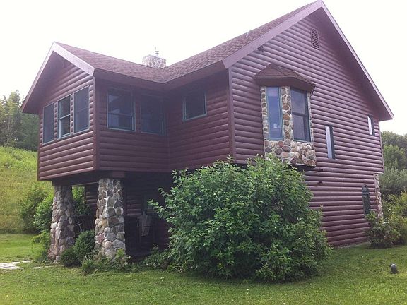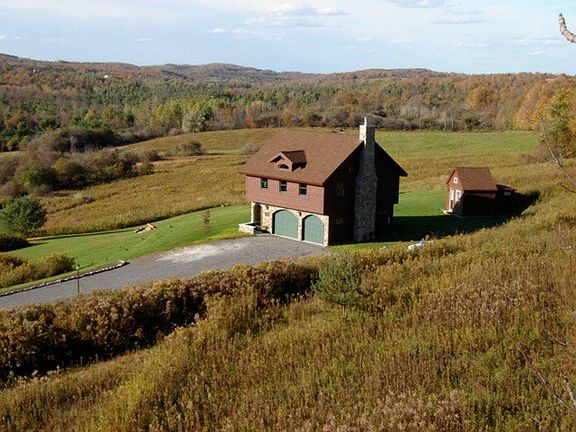 Private, custom built, carriage home. Offers old world charm, rock and log exterior with detailed woodwork interiors and craftsman furnishings. The open space has lofty-ceilings, with a cozy bedroom nook, kitchen alcove, gas fireplace in living area, bathroom suite. Downstairs is a garage with kitchenette and 1/2 bath. The deck off garage opens to the back yard with expansive views! 10 approximate acres with 100's of acres on 3 sides. Evergreen trees line drive for privacy. This handsome home has no other residence on the property. Terms - month to month lease. Property is furnished and includes WiFi, water, trash, sewer, (average usage) heat and electric, plowing and mowing.