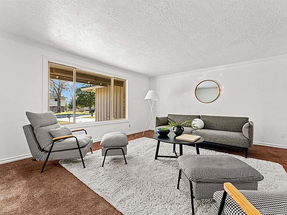 Beautiful single level home situated on nearly an acre in the heart of South Boise. Endless possibilities- build your dream shop, private swimming pool, ADU, livestock, barn etc. Interior is highlighted by new interior paint, light fixtures, multiple living spaces that are great for entertaining, vaulted ceilings, cozy fireplace and a bonus/flex room off the kitchen. Desirable floor plan- nearly 2,000 sf, 3 spacious bedrooms, 2 bathrooms in which one was completely remodeled and a flex/bonus room off the kitchen with access to outdoors. Kitchen features tile countertops, new paint, white cabinetry and ample counter space. Owner's suite has private patio access + new paint. Incredible property that boasts RV parking, mature trees, and lush landscaping during the summer. 2 car garage w/ extra storage space + additional street parking. Great location- easy access to freeway, restaurants, shopping, Boise Ranch Golf Course, parks & more! No HOA dues + low taxes! City water & Septic.