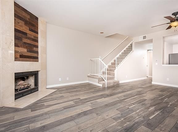 This beautifully upgraded La Costa townhome, in the award winning EUSD school district, features a newly renovated kitchen with quartz counters, stainless appliances, recessed lighting and a breakfast nook perfect for your morning coffee! The main level living area also offers a living/dining great room fitted with planked wood grained laminate flooring, inviting fireplace and access to your private outdoor deck. Upstairs, you'll find dual Master Bedrooms, ...one with a vaulted ceiling and dual closets, both with baths en suite that are finished with quartz counters and custom tiled shower/bath enclosures. Located in a highly desirable gated complex that's well maintained with pool, spa, tennis courts, all within blocks of the Forum, Starbucks, Equinox and local hiking trails.