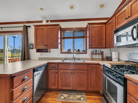 Gorgeous rambler with open floor plan and no back yard neighbors! Step onto the beautiful porch and enter into the large entryway! Vaulted ceilings in the livingroom and kitchen make the space feel open and bright! Large windows for great natural light, and a fantastic kitchen with stainless appliances, tons of counter space and great storage! 2 huge main floor bedrooms are sure to impress, as well as 2nd main floor 3/4 bath and main floor laundry! In the lower level, you will love the spacious family room, full bath, 3rd bedroom and the lower level master suite with huge closet, and walk through bath! Insulated 3 stall garage plumbed for heat, big patio off of the dining room and additional storage shed as well! This one is sure to please and will not last! Request a showing today! Home warranty included!