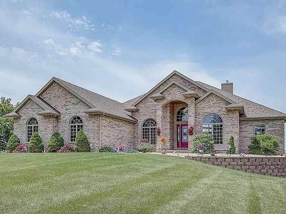 Luxurious estate home sitting on about 2.23 acres! Level lot w/room to build an outbuilding! Walk into this stunning 4554 sq/ft 5 bedrm Ranch home featuring a magnificent grand entry w/soaring high clg & decorative floor to clg windows that also grace the beautiful front formal dining rm! Breathtaking great rm is sun flooded w/the floor to clg windows that draw in the striking 2-story high clg & is accented by an elegant gas fireplace. Top of the line granite & S/S kitchen w/access to a covered deck offering panoramic countryside views! King size Master w/romantic fireplace & whirlpool bath! Entertain in the walk-out lower level family rm!