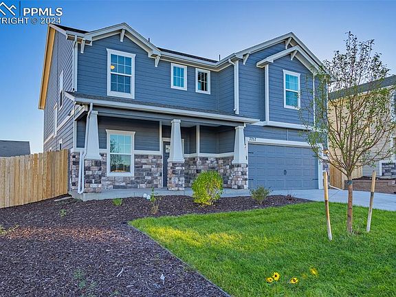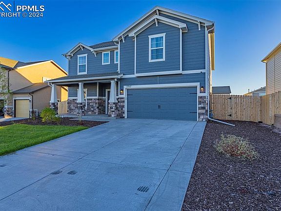 Welcome Home to this absolutely stunning new build in Sterling Ranch; El Paso County’s most exciting up-and-coming new home, master-planned communities! This home is tucked away from city life, yet still within reach of everything you need, including award winning District 20 and District 49 schools, easy access to parks, trails, shopping, dining & amazing restaurants. This brand new 2-Story home built in 2023, features 4 huge bedrooms, 3 high end luxury bathrooms, a 3-car attached garage with nearly 3,000 sq ft of thoughtfully designed living space. This home did not short on any of the upgrades and is ideal for those seeking modern elegance and comfort! You’ll notice there’s not a home across the street from this one, that’s because there’s going to be an entrance to a walking trail that will lead to a park. This Charleston Model (built by Challenger Homes) offers incredible upgraded design features throughout, to include the luxury two-toned paint for ceiling and walls, the expansive concrete slab addition, 9’ ft ceilings, and all brand new stainless steel appliances (fridge has a 5-year extended warranty). New roof, all new stainless-steel appliances, brand new furnace and water heater and air conditioning. This home is the definition of move-in ready!
