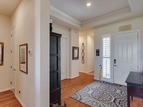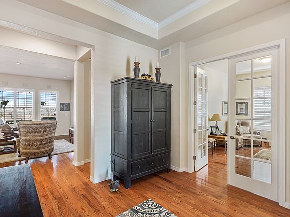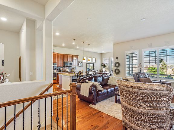 Ideally situated on the 13th green's tee-box, you will love drinking your morning coffee on your spacious, covered patio and walk-out back deck with unobstructed views of Long's Peak. Enjoy cool summer nights by the brand new exterior piped-in gas fire pit. The golf cart trail runs along the western side of the home, giving you more space and privacy from your neighbors. Unwind in your generously sized master en-suite complete with 5-piece bath, large walk-in closet, and towering 10 ft ceilings. The impressive, open floor plan features tons of storage space including a giant pantry, a gourmet kitchen with granite counters, stainless steel appliances, and massive eat-in island, as well as a huge family/living space. Natural light floods throughout and highlights the home's gorgeous, high-end fixtures and finishes. The possibilities are endless in the grand, walk-out unfinished basement.
