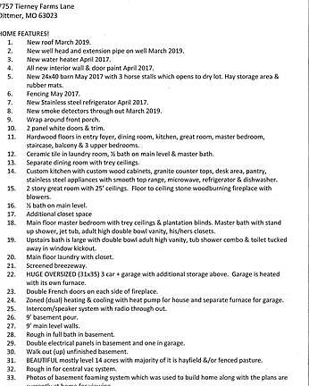 BEAUTIFUL 4 bed, LARGE 1.5 story home on 14 LEVEL acres w/river access! PERFECT FOR HORSES! 24x40 horse barn w/3 stalls & opens to dry lot. Most of acreage is hay field or pasture & is mostly fenced. Huge oversized 3 car side entry garage (31x35). Large covered wrap around porch. Inside is hardwood & ceramic floors through out. Separate dining rm w/trey ceilings. Amazing 2 story great rm w/25' ceilings, stone floor to ceiling woodburning fp, double french doors that lead to back yard. Kitchen has tons of custom cabinets, desk area, pantry, stainless appliances, granite counters & breakfast bar. Main floor laundry w/closet. Master bed is on the main level w/trey ceilings, plantation blinds & large master ba w/stand up shower, dbl bowl vanity, jet tub & his/her closets. Upstairs is 3 more generous size beds, balcony which overlooks great rm, large hall bath w/dbl bowl vanity. 9' basement pour, 9' 1st floor. BRAND NEW ROOF March 2019. See add'l features photo on this one! TONS OF OPTIONS!