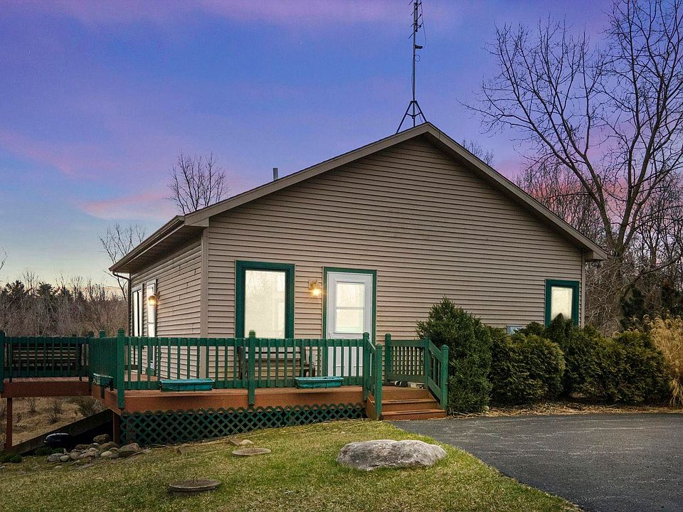 This is a one in a million, kind of property!! 108 acres of nature reclaimed wildlife habitat. Current owners have used property solely for the pleasure of viewing nature and walking trails. Approx 2 1/2 miles of maintained walking trails through property. Winding cement drive leads to secluded custom home built into hill. Total electric home features great views of the rolling terrain of property. Detached oversized two car garage. All appliances stay with home including John Deere Lawn tractor, Model 445 with front loader and 54 inch cut. Geothermal heat with immediate procession!
