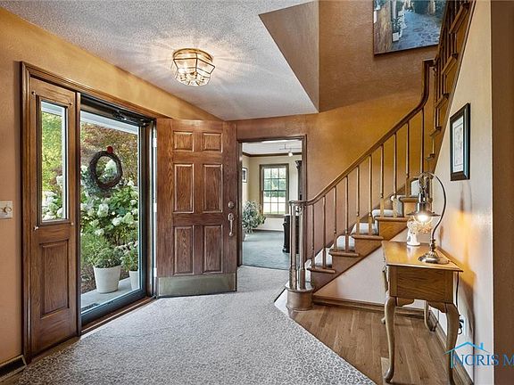Perfectly set back 3775 + sq ft home on a sprawling 4.6 acres in Monclova Twp. encompasses every sought-after amenity. Large great room with vaulted ceilings, brick fireplace, and built ins. Gourmet eat-in kitchen. Stunning en suite master bath with heated tile flooring, glass enclosed walk-in shower, soaking tub, vaulted wood-paneled ship-lap ceilings, and Velux skylight. Exceptional lower level with BILCO door. Two story 40x60 Morton Buildings pole barn with concrete floor, workshop with pellet stove, and 225 AMP service. Stocked 18’ Deep Pond. Generac Generator. Geothermal heating/cooling.