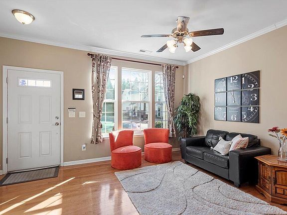 Location, Location, Location! This gorgeous home offers a perfect blend of comfort and convenience, located in the sought after Brier Creek area. Enjoy quick access to Raleigh, Durham, RTP, I-40, I-540, and RDU airport. Featuring Hardwood floors, crown molding, updated lighting, and custom blinds with custom built-in cabinets and storage in living room, gas log fireplace. Home has 3 bedrooms (3rd basement bedroom could be used as den) 3.5 baths and a huge storage room. Private extended patio and deck with beautiful wooded views. Community amenities include a pool and clubhouse. HOA covers amenities, roofing, and landscaping maintenance. Two dedicated parking spaces in front of home with additional visitor parking available. Recent updates: New roof in 2023 and new HVAC in 2024! Don't miss this beautifully upgraded townhome!