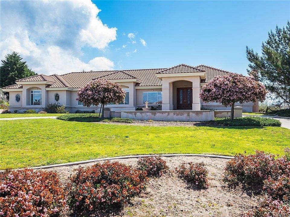 This spacious, single-story country home is located on a 1.1 acre parcel in the desirable Oak Park Estates neighborhood in Arroyo Grande! The 4Bed/2bath custom home features expansive views of the surrounding hills and ocean, new paint and carpet throughout, an abundance of natural light and an incredible spacious floor plan. You'll walk in through the huge custom front doors and find the light and bright living room and dining room. The gourmet kitchen includes an island with electric stove, plenty of cabinet space, a large pantry and tiled breakfast counter. The kitchen opens up into an additional eating area and family room with a cozy fireplace and views of the surrounding hillside. Walking down the wide hallways, you'll find the updated bedrooms including the master suite featuring a walk-in closet and spacious bathroom with soaking tub. There is a large storage area in the garage attic that is accessible from a pull down ladder. In the front, there is plenty of room for parking with the massive three car garage and circular driveway. There is an automatic sprinkler system for all 3 lawns and an automatic drip system for the trees and flower beds. The peaceful backyard includes a beautiful pergola, fruit trees, a large patio area just perfect for entertaining, and incredible views of the Arroyo Grande hillsides with the dunes in the distance. This property is a must see!!