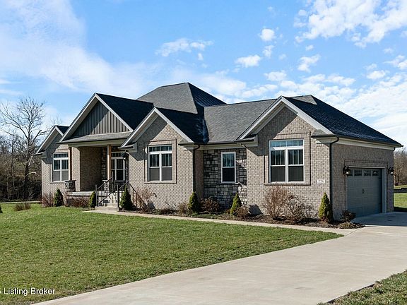 Welcome to this Fabulous Home!! Here you will find the home you need away from the City. This house sits on a 1.89 acre corner lot. As you make your way to the Front door you will be greeted with a nice size Front Porch which you will enter through the Double Doors. The oversized Great Room displays tall ceilings, crown molding, beautiful flooring and recess lights. All the living area is Wide Open and shows off the Gorgeous Kitchen with White Cabinets with Soft close, Granite Counters, Subway Backsplash, Oversized Island, pendants, and recess lights. Off the kitchen is the Dining Area with a Pantry, Crown Molding and Chandelier. You will also be able to access the covered Deck from here as well, which will make those evening sunsets a perfect place to be. Off the Dining Area is The Mud Room and Laundry Room. Access to the oversized Garage is off the Mud Room as well. This home is a split Floor plan which offers the Primary Bedroom in one direction. This Room is very large and showcases a large Vaulted Hip Ceiling, Recess Lights and Fan. Through the Barn Door is the private Primary Bathroom with Double Sink Back Free Vanity, Tile Flooring, Separate Water Closet, Walk-in Shower with Glass doors and a Walk-in Closet. The other Two Bedrooms are very large with Double Size Closets. The Basement has a nice size finished area while the remaining of the basement is unfinished and ready for you to design it just the way you want. A full Roughed in Bathroom is an extra bonus to the basement. The Walkout Basement has an Atrium Door leading to a Patio. The yard is Huge. NOTE: part of the property is in a Flood Zone, but not the home. Make your appointment today to view this beautiful home.