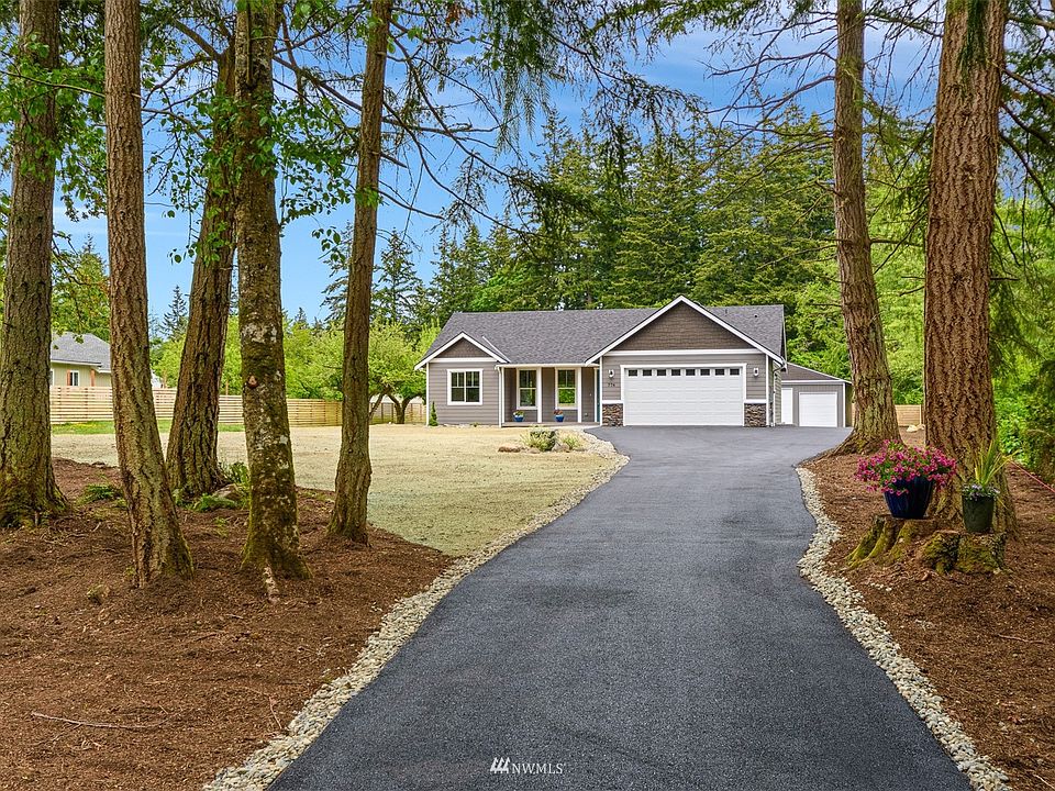 New 3 Bedroom Rambler on North End Camano, the no Ferry Island. Shy acre, Hydro seeded and move in ready. Chic Quartz kitchen with walk-in pantry, tasteful backsplash, under counter lightning and upgraded stainless appliances. Home features mini splits providing air conditioning and economical heating, Hybrid hot water heater, the latest HiTech fireplace to cozy up the Season, hard luxury floorings throughout the entire home and California style closets. Covered porch with Trex type decking and large patio for outdoor living. Huge detached SHOP 30x36. New Cedar fencing. Wired for Generator. Getter Fine Homes is known for paying attention to every detail.