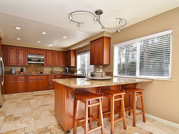 Absolutely beautiful Bent Creek Parc home across the street from Alamo Creek and its neighborhood walking trails. This spacious home of 2,366 square feet features 5 bedrooms and 3 bathrooms including one bedroom and full bathroom downstairs. Completely updated dream kitchen with beautiful cabinetry, granite countertops, SS appliances including dual ovens, and an expanded pantry. The kitchen/family room combo with easy access to the incredible resort-style backyard with salt water pool and spa, extensive patio, rock wall, palm trees, refreshed landscaping, and built-in outdoor kitchen with new DCS grill means you will have the go-to home for entertaining family and friends. Light and bright with soaring ceilings, Travertine tile throughout downstairs and gorgeous wrought iron staircase. Perfectly located with easy access to 580/680, BART, shopping, services, restaurants, golf, Bishop Ranch City Center and neighborhood bus transportation to award winning San Ramon schools. Welcome home!