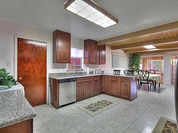 This beautifully updated home is ready for its new owners! From the long gated entry you open the front door and are greeted with an open living room with a double sided fireplace, wood and beam ceiling and wall of windows providing you a view of the sunroom and large patio beyond. The open dining area and kitchen boast new tile flooring and all new kitchen cabinetry and appliances. Even a new washer and dryer! A convenient first floor bedroom and full bath is off the entry.Upstairs you will find three bedrooms and a totally updated hall bathroom with all new vanity and fixtures. The sunroom off the living room and dining area is bright and cheery and leads out to the expansive patio areas, complete with barbeque pit, white jade orchid tree and green apple, avocado and tangarine trees. Plenty of room to set up some vegetable beds too!What a great location this is with vibrant Webster Street and its many shops and cafes just a couple of blocks away. There is lots to do in Alameda....stroll along the beach, picnic at Washington Park, shopping on Park Street or hop the ferry to San Francisco!Commuting is a breeze with easy access to Hwys 80/580/24, BART, buses and the ferry.