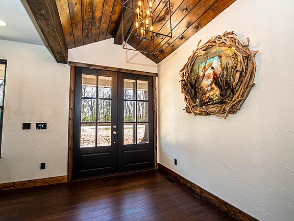 A 2019 modern farmhouse rustic home is awaiting! Not included in the square feet is an additional apartment/in-law quarters (around 530 finished sq ft totaling 3680 sq ft of total finished living space in the house and 40x60 shop). Total of 4 car garage with an RV (13.6' ft tall door) bay. The house features black Anderson windows. The open kitchen is awesome! Double oven, 5 burner LG gas stovetop, apron sink with pull-down coiled faucet and 2 sets of trash/recycling in the plentiful cabinets, grey granite, microwave/convection as well. Awesome en suite with views of trees, waterfall dual zone 2 person shower, air ''bubble'' tub, washer and dryer close by and an office area was done in shiplap. On the other side of the house the split bedroom plan has bedroom 2 and 3 and bath. Many sliding barn doors were used, adding to the charm. The walkout basement has a family room, 4th bdrm, and bath. In the open living the beautiful stone fireplace (wood burning with blowers) catches your eye, and banks of windows overlooking a 36 foot long covered porch to enjoy the treed view. Lots of other details such as hard bamboo flooring, gorgeous lighting, zone 95.5 efficient HVAC, foam insulation used, and more. Delightful style on 5.01 acres! To the rear of the property is a spring-fed, wet weather creek that all the Compton Hollow residents can enjoy. Also, there are trails for walking/biking to the East of the property. Country and cool!