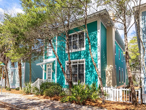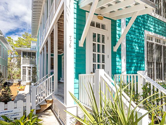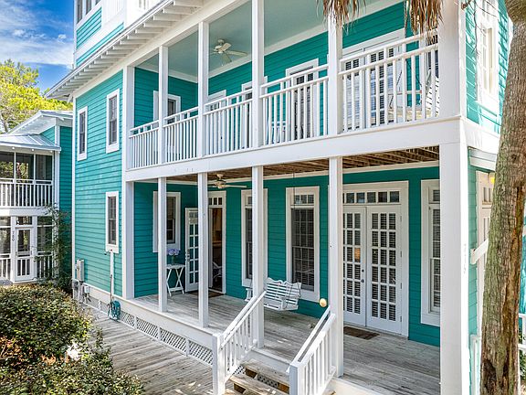 This inviting cottage offers the popular open floor plan most owners prefer. The kitchen is roomy with breakfast bar seating. The kitchen blends seamlessly with the dining area and then into the living room, which includes a fireplace for those chilly winter nights. Off the living room is a covered porch that runs the length of the living area for outdoor enjoyment. A full bathroom and storage round out the downstairs plan. Upstairs, the second floor includes the primary bedroom with full bath and opens onto a shaded porch. Two guest bedrooms share the guest bathroom. A tower with covered porch is located on third level with views of Seaside's spectacular sunsets. Sun light fills the home through the many windows and doors upstairs and down. The spacious guest house can be rented separately or together with the main house. The guest house includes two screen porches and two decks with French doors overlooking a nature grove. Choose your serene location to relax with your favorite book. These family-friendly cottages are located close to the west-end pool and just a few minutes stroll to the beach or Seaside town center with over 50 shops and restaurants.