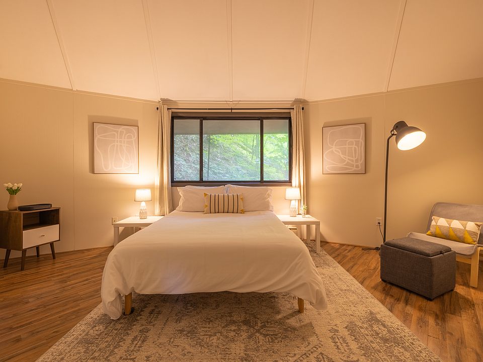 Fully furnished, Stocked Kitchen, Utilities not included. PLEASE READ MINIMUM QUALIFICATION STANDARDS FOR RENTERS BEFORE CALLING. PHONE INTERVIEW REQUIRED BEFORE SHOWING OF HOME QUALIFICATION STANDARDS Applicants who do not meet minimum screening standards will not be approved. -Applicant must have current photo identification and a valid social security number. -Applicant's monthly household income must meet or exceed 2 times the rent. All income must be from a verifiable source. Unverifiable income will not be considered. Cosigners are accepted to meet this requirement. -Applicants must receive positive references from all previous landlords for the previous 5 years. -Applicant may not have any evictions or unpaid judgments from previous landlords. -Applicant must exhibit a responsible financial life. Credit score must be a minimum of 600. -A background check will be conducted on all applicants 18 years and older. Applicant's background must exhibit a pattern of responsibility. -Applicant must be a non-smoker. -Occupancy is limited to 2 people per bedroom. No Smoking, No Cats. First month and security deposit due on signing. Month-to-month basis Less than 2 miles from Hatley Pointe Ski Resort! All the whimsy and excitement of a mountain treehouse with the comfort of a modern home. This "roundette" is perched nearly a mile above sea level, surrounded by towering spruce and fir trees, in the heart of the Blue Ridge Mountains. Though it's a quick 40 minute drive to the vibrant Asheville downtown, it truly feels like a private wilderness oasis. 4WD/AWD is recommended during winter months. Read more under "guest access". The space The architecture of this house is truly unique, with curved walls and high, vaulted ceilings. Walls of windows welcome in lots of natural light, and envelop you in the natural beauty of the trees and mountains. The open floor plan includes a bright and clean full kitchen, a living space with smart television and fireplace, two bedrooms, one full bath, and one half bath. Outside, the wraparound porch is the ideal place for a morning coffee or evening beverage, and has a gas grill for cooking if you choose to do so. The home features a washer and dryer as well as an air-conditioning and heating system for year round comfort. Access to this unique home is via a set of stairs that lead to the front porch and door, which should be considered for those presenting with physical limitations. A security camera is set up to monitor the driveway to the entrance. The cabin resides within the 5,000 acres of land that comprise Wolf Laurel Resort. As part of your stay, you will also receive access to the Village Club. Benefits include a heated seasonal outdoor pool, tennis courts, pickleball courts, trout pond, children's playground, yoga classes and more. Miles of trails surround the home, with private access to the Appalachian Trail and Big Bald, which is the highest local summit at 5,516 feet, and where you'll experience arguably the best 360 views around. The area is also rich with additional outdoor activities including skiing, swimming, horseback riding, zip lining, and rafting. Guest access You will enjoy access to the entire home during your stay. For your convenience, the house is set up for contactless self check-in with keyless entry. A unique code will be generated for the length of your stay that will unlock the main door. Entry point to Wolf Laurel Resort is gated with a staffed attendant. Booked guests will check in with the attendant for access. The primary roads in Wolf Laurel are paved, but the secondary roads are gravel. All roads are well maintained by the full time staff but remember these are mountain roads and mountain driving conditions. You will will need to take your time and navigate slowly. Most cars of all sizes can easily drive the roads in the no-winter months, but sports cars that have especially low clearance are not recommended. Also, motorcycles are not allowed in the community so please plan accordingly. Winter: We are thrilled to welcome guest year round but please be advised: 4WD/AWD is highly recommended during winter months. If you are not comfortable with possible winter driving conditions, travel insurance my be worth looking into. There are winter days in Wolf Laurel when I am comfortable driving a Honda Civic around, and there are days when the only thing I would want to be driving is a plow truck. Most days fall somewhere in-between. In my opinion, winter in the mountains is best when not rushed so I recommend planning to arrive with plenty of food and supply's so that when the snow does start to fall you get to cozy up by the fireplace and enjoy your winter getaway! Other things to note Though the WIFI is strong, Wolf Laurel Resort has spotty cell service throughout the community. WIFI calling is available in the home and you may have regular cell service on the property but it is not guaranteed. The new HVAC system is controlled by the remote holstered on the wall by the bookshelf. Tenant pays all utilities. The lease is month-to-month. Monthly rent: $2250 Security Deposit: $2250 Cleaning Fee: $300 Pet Fee: $200