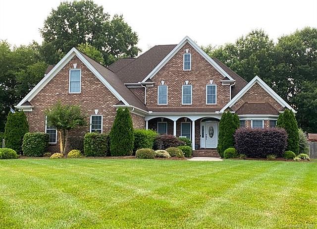 Welcome home! This all brick beauty is waiting for your buyer to call it home. Two story foyer invites you to come on in to enjoy the custom touches of the formal DR w/coffered ceiling, crown molding throughout downstairs, sitting room or office, cozy family room w/vaulted ceiling & gas log fp, master on main w/double tray ceiling, Jacuzzi tub, floating LVP floor over Brazilian cherry hw, open kitchen w/granite, island & newer microwave, ensuite on first floor for guests, spacious laundry room w/sink for scrubbing, updated oil rubbed bronze hardware, Nest thermostats upstairs & down, ample closet & attic storage space, 3-car garage, fenced yard w/fire pit & raised beds for a vegetable garden. All this with easy access to Concord Mills, Charlotte Motor Speedway or I-85/I-485 for further travel. Great school district and neighborhood offers an outdoor pool, tennis courts & multi-use court. Don't miss this one because it won't last long! Kids swing set in backyard does not convey.