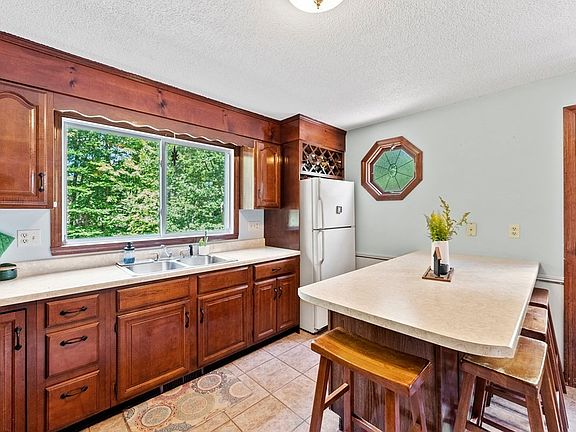The True Essence of New England Tradition is found in this Captivating Cape with a rustic wooden exterior is nestled among picturesque mountains is set on 1.46 Acres w/ stone walls, terraced yard & a quaint gazebo all Can Be Your Peaceful Retreat. Featuring APO, New Septic & Leech-field, Mostly Replacement Windows, New Furnace, Newer Bock Hot Water Tank & Newer "wood-look" laminate floors. You'll love the open layout for gatherings. You'll find a fully applianced cheerful kitchen w/cherry cabinets, center island dining w/access to a relaxing deck. The kitchen is all open to a charming dining rm that flows into a great sized living room w/striking fireplace. There's a desirable 1st flr bedrm w/large closet, could be used as a den or office along w/ a full bathrm w/double sink vanity! The 2nd flr has 2 generous bedrms w/roomy closets & a large Full Bathrm. There's plenty of potential to finish the Walk-Out Basement to the covered patio & secluded backyd. Country Living Can Be Yours!