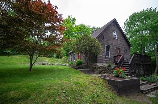 Peaceful setting at the foothills of the Berkshires. Stone walls, gardens, and brook ! Open floor plan, first floor master bedroom. Lower level with French doors to covered patio, walk out to Gazebo. Must see ! Approx 7 miles from Southwick Center !