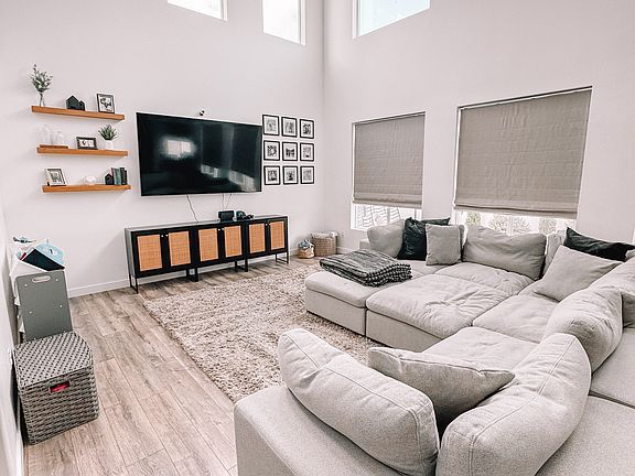 Welcome to this spacious open floor-plan home with high-end finishes located in a quiet family-friendly neighborhood close to Greenwood elementary, parks and easy access to shopping and dining. This home has been curated with comfort and style in mind and even has permanent lighting installed for easy holiday celebration decor. The home has 6cm quartz countertops in the kitchen as well as all the bathrooms, black and gold hardware throughout the home, as well as shiplap accent walls. With a spacious front entry room, the home also has 4 large bedrooms (1 on the main floor), 3 full bathrooms (1 on the main floor), as well as an open loft perfect for a playroom or office space. A walk-in pantry with built-in shelves in the kitchen, a generous master walk-in closet, as well as a large laundry room allow for ample storage for all your household items. The home also has custom built-in bookshelves, a mudroom, and an extra deep garage that can fit 3 cars with overhead storage racks included. Washer, dryer and refrigerator provided. Owner covers monthly HOA fees. Renters responsible for all other utilities: water, trash, gas, electric, internet. Lawn maintenance negotiable. Small dogs allowed, NO cats.