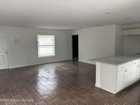 $5000 SELLER CONCESSION thru builder Preferred lender! Located in Palm Bay, this modern style new construction home epitomizes luxury living at an affordable price! With 1409 SQFT of living space, to include three spacious bedrooms and two elegant bathrooms, it offers ample space for both relaxation and entertainment. The open-concept features a modernized kitchen, complete with 30'' upper cabinets, Samsung stainless steel appliances, island, and highlighted with granite countertops. The master suite boasts an upscale bathroom, with double sinks, custom fixtures and shower. Each additional bedroom is generously sized, ideal for family, guests, or a home office. Other features to note is designer tile throughout(NO CARPET!), custom fixtures and recessed LED lighting, storm shutters, vinyl insulated windows, hurricane rated garage door, vaulted ceilings, and rear patio area for outdoor gatherings. NO HOA! Well water w/ 40 gal bladder and 1HP pump/Septic! 2-10 and 1 year warranty include