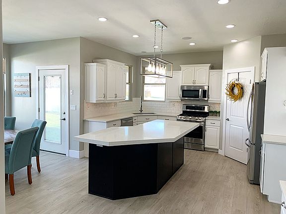 This South facing home is not to miss! Gorgeous fully finished home in Syracuse. You will love the high ceilings, open floor plan, and new flooring. Some of the features include quartz countertops, home theater room, gas fireplaces upstairs and downstairs, downstairs kitchenette, outside basketball court, large covered patio, 3 car garage, walkout basement, RV parking, and garden area. The office/den could easily be converted to a 6th bedroom. Great neighborhood and the best schools!