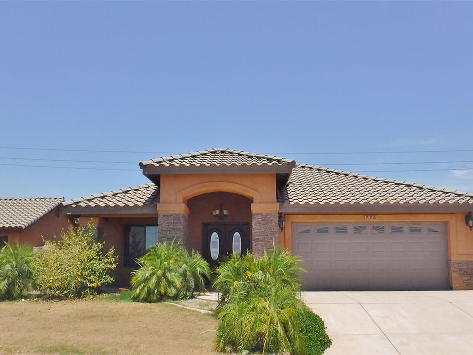 HIGHEST & BEST OFFERS DUE TUESDAY 8/2/16 AT 1:00PM. Walk through the grand portico entry with stone brick facade to the covered front patio. Front double doors with unique glass design open to the living room with vaulted ceilings. Through the elevated archway is the great room containing the kitchen and expansive dining room, which opens by French door to the covered patio with ceiling fan and large fenced backyard