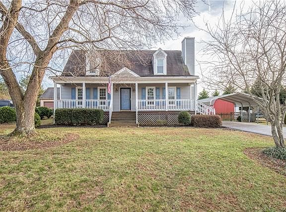 Picture Perfect, Ready to Move into Cape with Full front Porch, Multiple Decks and Pergola. Large Fenced Rear Yard with flowering bushes, shrubs, plants and flowers for all seasons ,Double Width Detached Carport and Paved Drive. Detached storage building/workshop with electricity and workshop. Home Updates and upgrades include: Vinyl replacement windows, front porch added, vinyl siding, heat pump replaced, digital thermostat added. Updated kitchen with custom built island with storage, custom spice cabinet, custom pantry, tile floor. Downstairs full bath has tile floor, laundry room has tile floor, Freshly painted interior, some new carpeting. Buyer has nothing to do but move in and enjoy this lovely home.