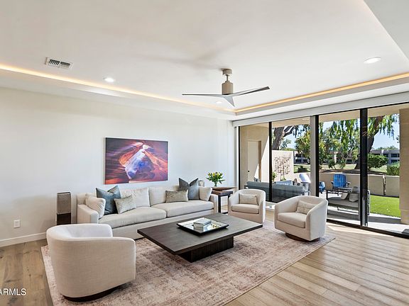 Discover unparalleled luxury in this elegant 3-bedroom, 3-bathroom home situated in guard-gated Gainey Ranch. With stunning views of the 27 hole golf course, this residence features a sleek, modern design. The open-concept layout is filled with natural light, creating an airy, welcoming space ideal for both relaxation and entertaining. Step outside to a serene backyard retreat located on the golf course. Only a short walk away, the Estate Club provides a range of amenities such as pickleball, tennis, swimming, and social events. Gainey Ranch is situated in an A++ location benefiting from all Central Scottsdale has to offer: The Barrett Jackson Car Auction, Waste Management Open and Spring Training as well as excellent restaurants and easy access to both airports.