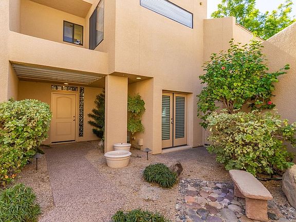 GORGEOUS LUXURY SINGLE LEVEL PRIVATE PATIO HOME OVERLOOKING GAINEY RANCH (ARROYO) GOLF CLUB. This extensively remodeled 3 bedroom/2 bathroom end unit is bound to impress. Features and improvements include spacious living areas, exquisite flooring throughout, remodeled bathrooms, gorgeous kitchen, SS appliances, elegant fixtures and much more. There is a private gated front courtyard and a wrap-around patio with built-in BBQ and views of common space and the golf course (2nd hole) that offers privacy and is wonderful for outdoor entertaining. This location in The Cottages is just steps from the Estate Club with heated pool, gym, media room and 7 court tennis center. A resort-like lifestyle awaits you in Gainey Ranch close to shopping, restaurants, Old Town Scottsdale and Spring Training.