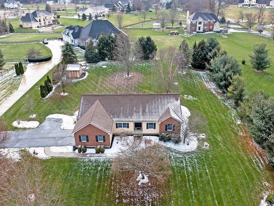 Wonderful location on a 1.43 acre lot situated just North of Westerville & just South of Galena/Sunbury, between Alum Creek Dam & Hoover Dam! Great room style ranch with private yard, deck, & shed. Soaring ceilings in great room/kitchen/eat in area! Six panel doors, hardwood floors. Dining room & den! Corner, gas log fireplace, freshly painted cedar front including shutters & front door! Driveway sealed, freshly painted interior, new carpet, new light fixtures, new kitchen faucet & new mirrors in baths too! Spacious first flr laundry & open stairway to the unfinished basement but stud walls are in! Sideload garage. Floor of deck was replaced & all of the deck/rails were freshly power washed & stained 10/2021. Please see ALL ag to ag remarks&all docs attached to MLS+offer deadlines.
