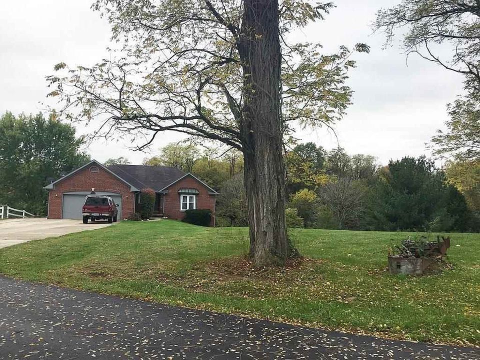 Nice custom brick ranch with finished basement sitting on 10.02 acres with woods and lake front access. Large master suite with huge walk in closet and full bath. Beautiful kitchen with appliances, island and granite countertops. Hardwood floors. Huge living room. Family room with fireplace on lower level plus 1 bedroom and full bath. Attached 2 car garage.