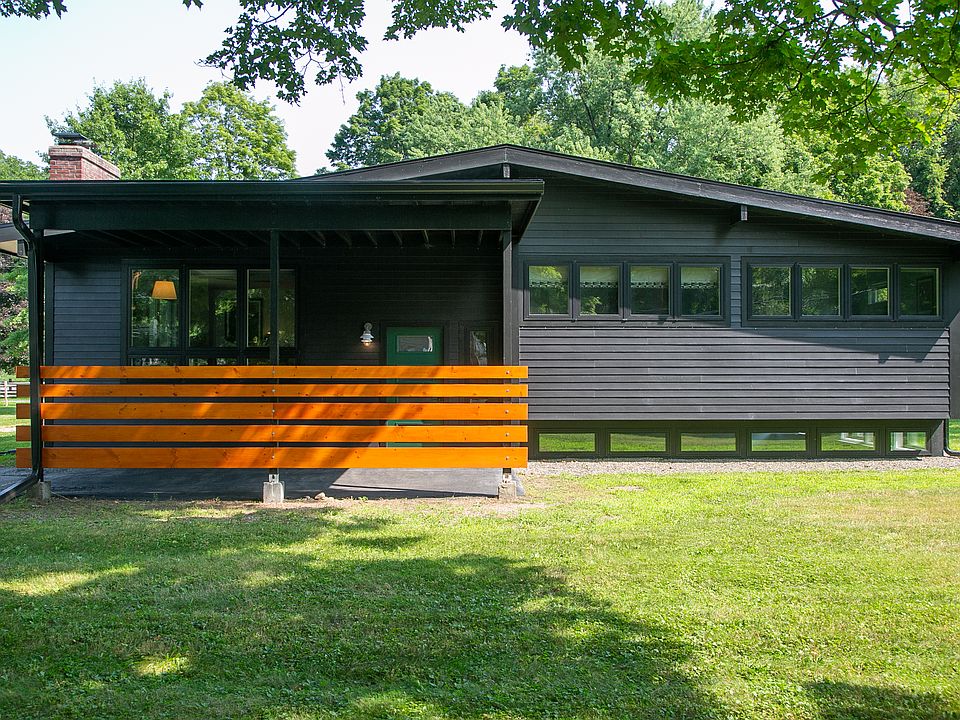 Mid-Century Perfection This chic reimagination of a 1960 ranch with 3 bedrooms, two baths, and elegant living on one floor is move-in ready. The buyer can throw a party on the day of the closing. This rare find is a fully renovated, meticulously designed 1,788-square-foot modern home in the country. New Italian Bertazzoni stainless steel appliances including induction cook top, wall oven and microwave, refrigerator and dish washer. Luxury finishes throughout including quartz counters, high end lighting, Renovation Hardware fixtures, custom solid wood cabinetry, stunning, tiled bathrooms, and Danish energy efficient wood burning insert tiled fireplace. Primary bedroom and spa bath, two secondary bedrooms with shared hall bath with soaking tub, open kitchen, dining, living room with door to mudroom and deck on the first floor. Car port has easy access to the front entrance. Windowed, open lower level is completely finished for use as office, gym, game, media, or guest room or any combination. Separate utilities/storage room with brand new Maytag washer and dryer laundry area and full freezer. Energy efficient, low maintenance, renovation includes year-round electric heat pump heat and central air conditioning, new 50-year roof, new double paned Andersen windows and all new mechanicals. Exterior is new Hardie board which never needs painting with zip system insulation. Hardwood floors in living areas. Situated on a sunny, quiet, open .67 acres level corner lot with ample room f