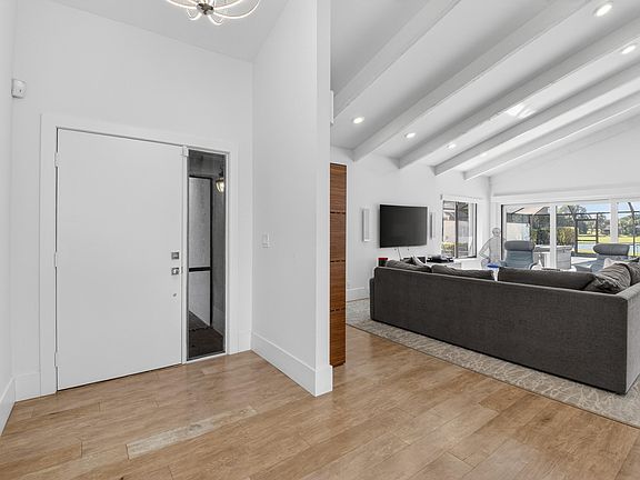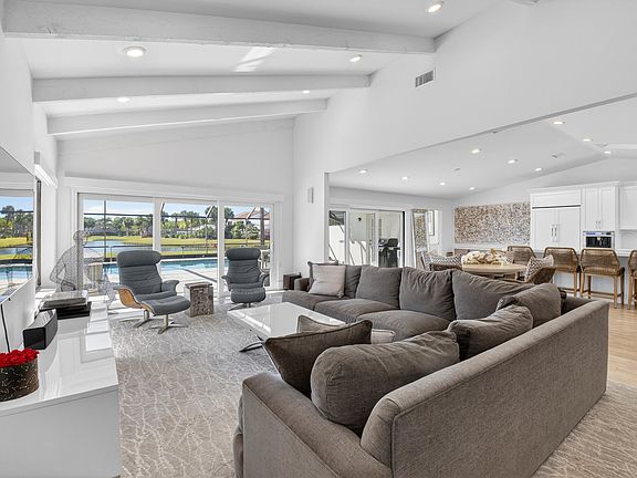 Move right into this fabulous renovated 3 BR, 3 BTH pool home overlooking the lake with spectacular sunset views! Custom kitchen opened up with quartz center island, stainless steel jennair appliances, wine fridge and large pantry closet. Engineered wood floors throughout living areas, roof replaced 2023, partial impact glass and accordion shutters.