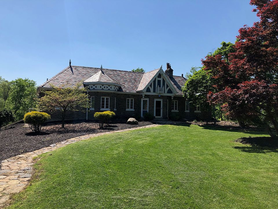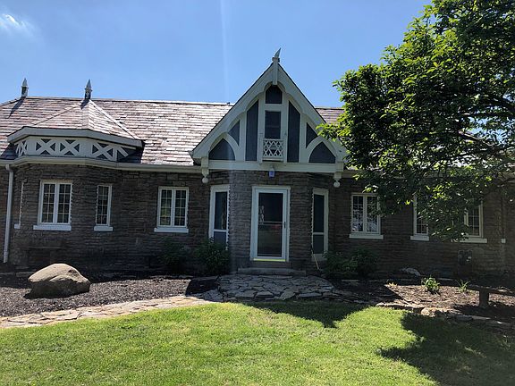 The charming home was built in 1939 by a German immigrant that was a stone mason. All of the stones were brought up from the Ohio River & the home's U shape was based on a train station in Munich. The courtyard & pool space offer plenty of entertaining areas. This home is an icon in the area, well known by all that drive by. Property includes a pond and an out building. Must see!