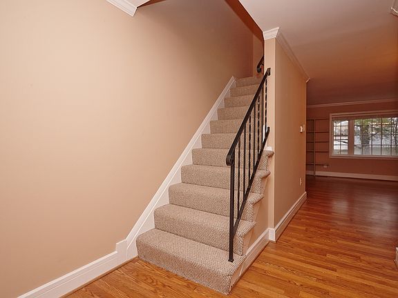 Immaculate 2br 2ba town home in Cardinal Forest! New designer beige paint w/ white crown molding. Hardwood floors on main and upper level. Brand new Berber carpet on stairs and in basement. Built-in bookshelves in LR. Walk out basement to fenced in patio w/ shed. Laundry room, storage and workbench area. Community features a pool.