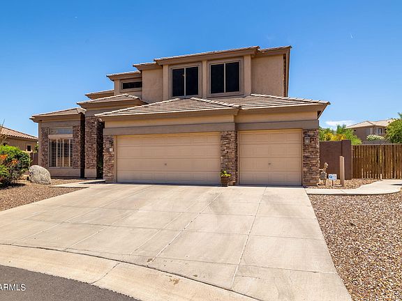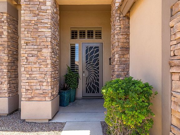 Situated on premium cul-de-sac lot in the gated community of Grayhawk at Las Sendas, this home features 5 bedrooms, 4 bathrooms, formal living + dining, separate family room, plantation shutters, stone fireplace, wood floors & tile in all traffic areas. Eat-in kitchen opens to family room and offers granite countertops, a large center island/breakfast bar & pantry. Primary suite offers a walk-out balcony, a sitting area & a full bath with his & hers vanities, separate tub and shower, and walk-in closet. Resort-style backyard complete with extended covered patio, pool with rock water feature, extended pool deck, gas firepit, outdoor kitchen with built-in ice chest & smoker - perfect for entertaining! New appliances, carpet, fresh paint & pool pump.