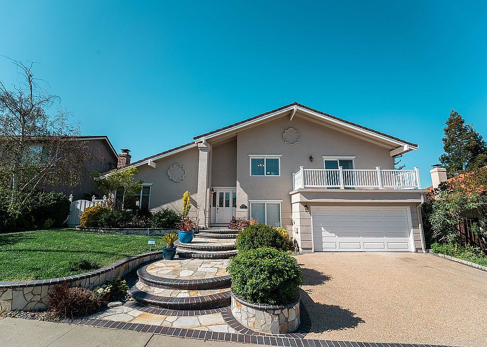 Spectacular single family house on Oak Hills.Offers 5 bedrooms, 3 full bathrooms, 2-car garage. 1-bedroom and 1-full bathroom down stairs. Approx 2,523 sqft of living space on a 5,950 sqft lot. The house features a vaulted ceiling in the living room & separate formal dining room & master bedroom. House has abundant natural light. Updated eat-in kitchen. Brazilian teak engineered hardwood floor. Brand new Berber carpets. Updated bathrooms. 2- skylights in the master bath and hallway bathroom. Huge balcony off the big & very bright Master Suite with bountiful Pleasanton Ridge views. Newer exterior paint on the whole house. Fresh interior painting. Central A/C & heating. Dual pane windows. Professionally designed front yard with perennial flowers and covered patio, vegetable garden, many fruit trees. The house also has a large bonus walk-in attic that is not counted into total living space. Community pool. Very low HOA. Only $44/ month. Close to parks & shopping. Short walk to Foothill High School crossing Oakhill Park. Perfect neighberhood to raise kids in. Easy access to Highway 680/580 /84, BART / ACE Train.