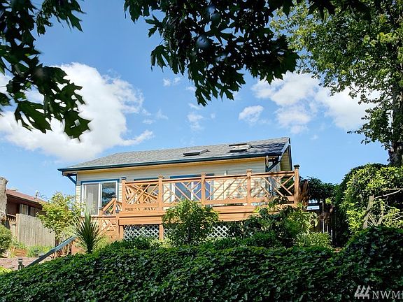 Gorgeous sunsets with Olympic Mountains view put you above the crowd from the 330 sf deck's perch of privacy. This hillside Highland Park custom-built bungalow is permit-remodeled & updated: new roof, electrical, heat, and insulation. This emerging private neighborhood's central location is ideal for urbanite commuters with fast routes thru less-congested Seattle arterials -20min mornings to Amazon. Security and parking: The gated alley-access provides space for vehicles, boats, or smaller RVs.