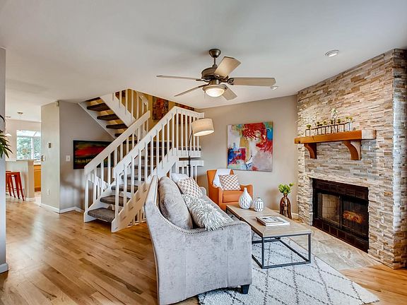 Backing to a gorgeous green belt, this fabulous condo is loaded with charm! The bright living area is highlighted with designer paint, glistening wood floors and an absolutely amazing corner stone fireplace! Perfect as your hub for entertaining, the delightful kitchen features stainless appliances, pantry, a handy serving bar to the dining area and a garden window for your herbs! Whether entertaining outside, enjoying your morning coffee or staring at the stars, the main floor deck overlooks open space and is wonderful for decompressing! The spacious bedrooms have vaulted ceilings and the master features a beautiful en-suite bath, with tiled surround! Spend game days and movie nights in the comfy lower level family room with walkout to the privacy fenced and gated backyard! Large storage area! All appliances and deeded covered parking space! Only steps to Arapahoe Park for hours of outdoor fun! Littleton Schools and nearby Arapahoe High School! Easy C-470 access! This one won't last!